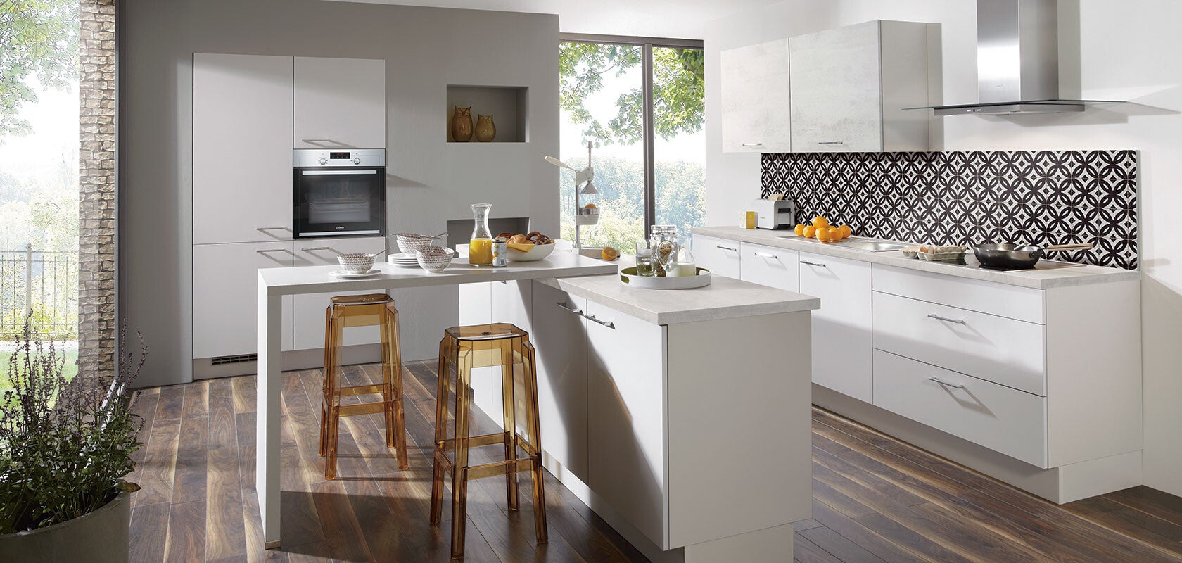 Pour ceux qui fuient les tendances éphémères et qui préfèreraient apprécier une cuisine moderne et intemporelle au fil des années, il est recommandé de choisir des décors clairs et unis. Que vous planifiiez un ton sur ton sobre ou que vous jouiez avec les verres de couleurs et les décors de plan de travail, vous disposez d une infinité de possibilité.