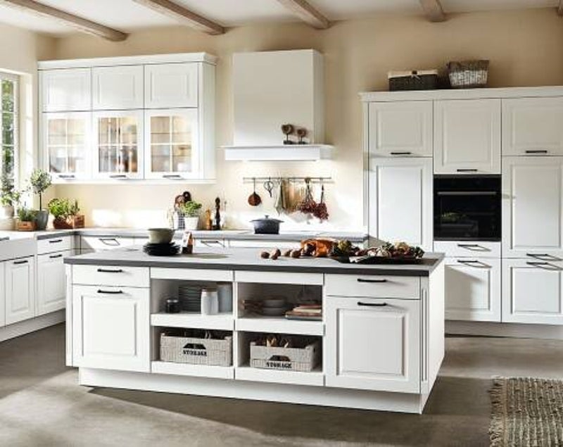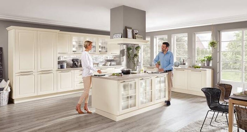 Lumineux et chaleureux – une invitation à partager des moments précieux. Les lignes épurées et la douceur du ton sable fin créent une ambiance apaisante et un style cottage moderne propice aux retrouvailles familiales et amicales. Le confort est le maître mot : le panneau mural allongé offre assez d’espace pour tout ce qui vous est cher et confère à la cuisine une personnalité affirmée. Les portes vitrées à croisillons apportent une touche de légèreté et incarnent l’essence du style scandinave, tandis que l’éclairage intérieur crée une atmosphère intimiste et feutrée. Idéal, jour après jour.