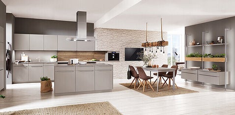 Les tons de gris offrent une formidable base pour les planifications de cuisine modernes et élégantes. Le gris, qui rappelle la technologie et l’urbanité, est aussi la couleur des pierres et crée ainsi un lien avec la nature. La combinaison avec les tons chauds du bois fait naître un sentiment d’intérieur chaleureux.